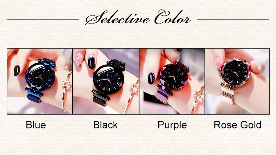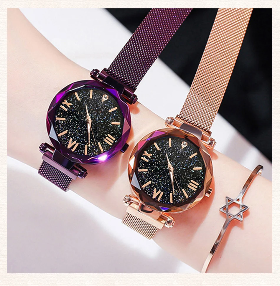 • Design elegante:O relógio possui um design elegante céu estrelado, tornando-se um acessório elegante para qualquer roupa.
